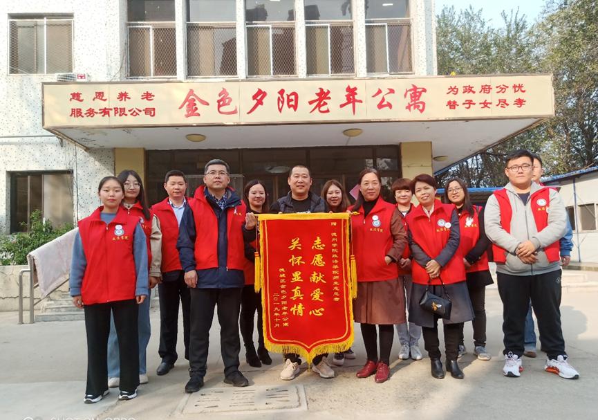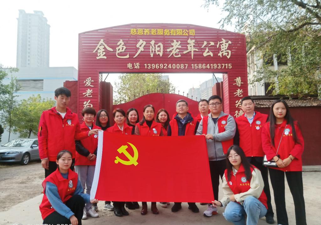 为深入推进“不忘初心,牢记使命”主题教育,弘扬中华民族尊老敬老的传统美德, 2019年10月19日,政bat365中文官方网站教工第二党支部教师带领大学生志愿者们赴金色夕阳敬老院开展了志愿服务活动。