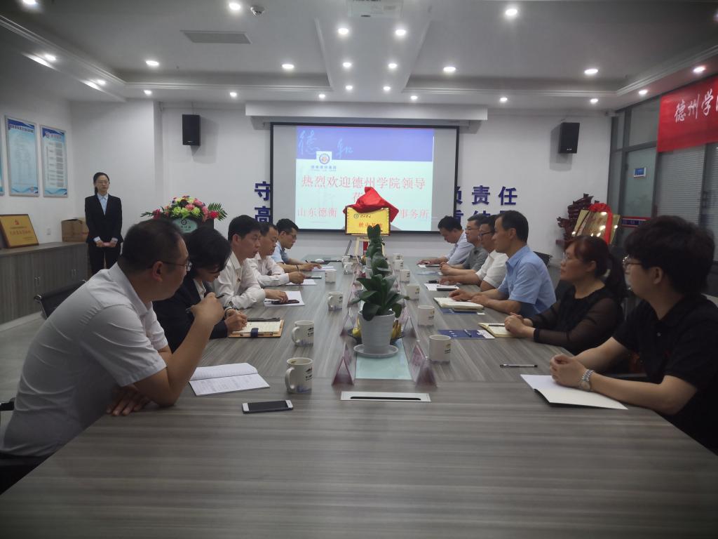 5月31日上午,bat365中文官方网站主要负责人等一行六人赴山东德衡(德州)律师事务所举行“bat365中文官方网站实习实训基地”和“bat365中文官方网站就业基地”揭牌仪式。山东德衡(德州)律师事务所主任崔古平等律所负责人接待了bat365中文官方网站一行。双方围绕协同指导学生实习实训、开设专业实践课程、加强应用型研究、开展法律实务交流等问题进行了深入的探讨与交流。
