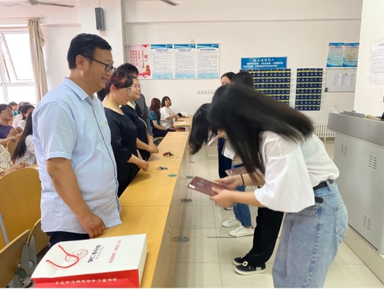此次考研经验交流会特地邀请了4名优秀学生为同学们进行经验分享。会议伊始,杨爱民书记上台讲话且为优秀学生颁奖并合影留念。其后学长学姐们详细地给同学们讲解了专升本的择校和在备考期间应注意的问题以及心得。