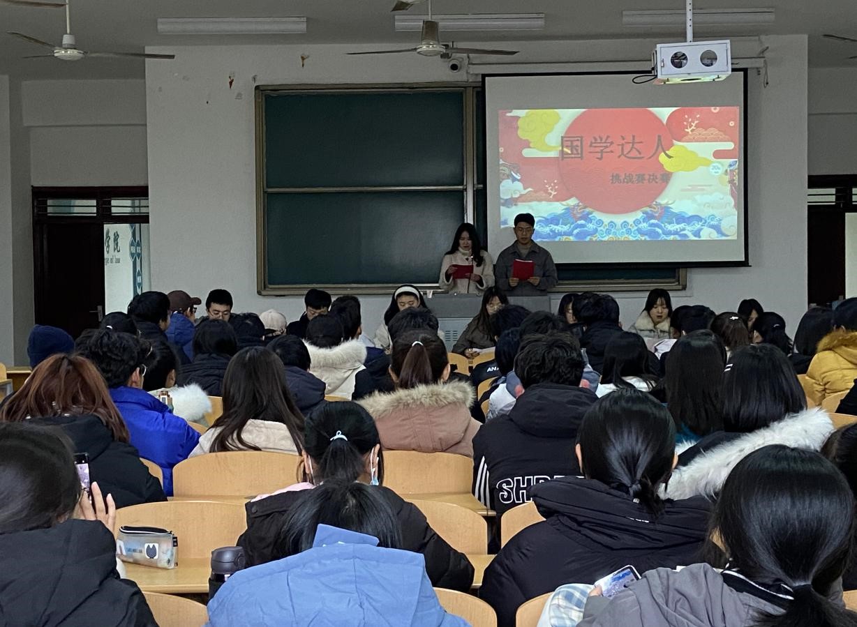 本次比赛分为初赛和决赛两部分,初赛为“无所不能”笔试关,选取了以学院为单位的三人成绩的总分排名前10的优秀队伍进入决赛环节。决赛分为“齐头并进”成语释义环节、“对答如流”诗词知识大比拼环节以及“争分夺秒”国学知识抢答环节。每环节完成后由主持人现场公布成绩及名次,最终评选出团队奖以及个人奖的国学状元、国学榜眼、国学探花。活动结束后拍照留念为本次活动画上了圆满的句号。