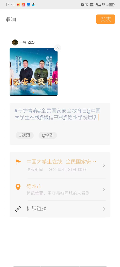 我国第七个“全民国家安全教育日”到来之际,bat365中文官方网站组织同学们参与“微博#国家安全日#话题”互动活动。