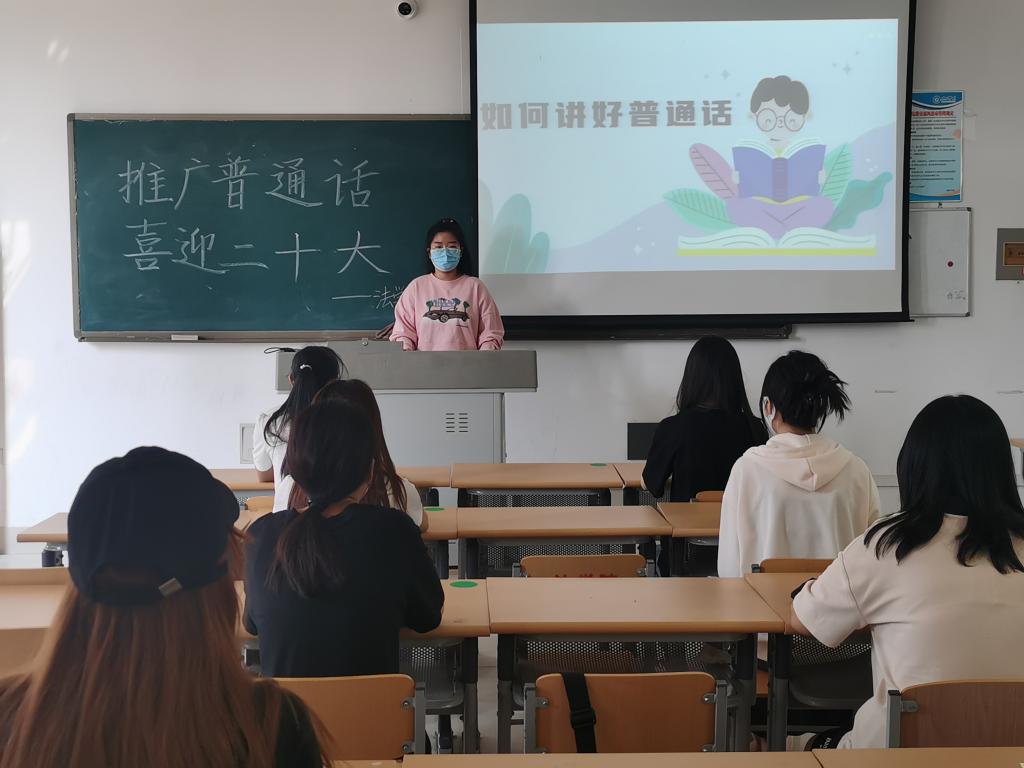 为进一步加大普通话的宣传力度,增强学生们的语言规范意识、法治意识和参与意识,引导学生自觉弘扬中华民族传统文化,为党的二十大胜利召开营造浓厚氛围,bat365中文官方网站于9月18日在博文楼417教室举办了“推广普通话,喜迎二十大”为主题的普通话讲座。