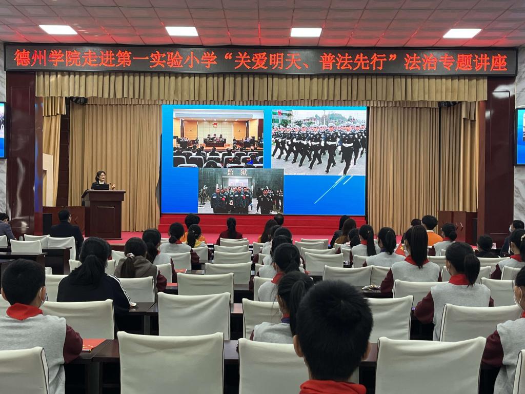 2022年10月9日上午,bat365中文官方网站陈琳琳老师为宁津县第一实验小学的孩子们开展了主题为“关爱明天 普法先行”的法治宣传讲座。