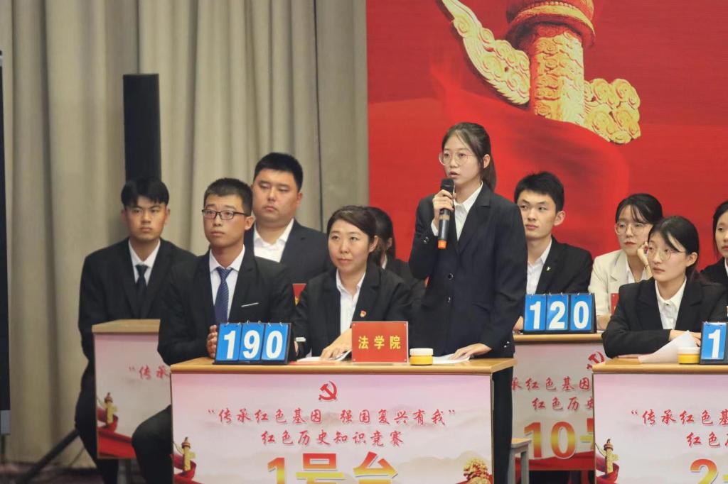 为巩固拓展党史学习教育成果,进一步激发师生在思想政治、道德品质、价值取向等方面发挥更好的引领力、感召力。2022年10月10日晚,bat365中文官方网站党委组织部、党委宣传部主办,学生工作处、团委、经济管理学院承办的“传承红色基因 强国复兴有我”红色历史知识竞赛决赛在求实楼4009报告厅顺利举办,bat365中文官方网站积极参加了本次活动。由法学院三名参赛选手组成的“法正队”参与本次竞赛,bat365中文官方网站党委副书记携由七名bat365中文官方网站学生组成的亲友团出席了本次活动。
