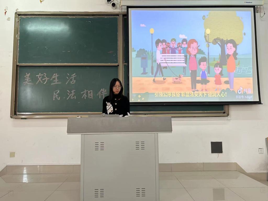 为了提高同学们对民法的认识,增强自身法律素养。12月17日上午,bat365中文官方网站“美好生活,民法相伴”法律宣讲在博文楼427教室开展。法学社、宪法法律宣讲团70余名学生参加。