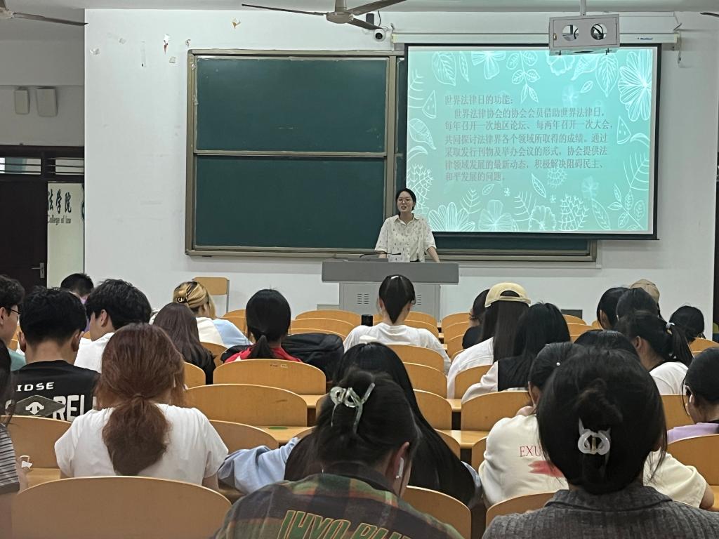 活动伊始,主讲人采用PPT展示、视频播放等形式为法学社成员介绍了世界法律日与地球日的由来、发展和成就。接下来,主讲人以知识问答的形式,与同学们进行现场互动,帮助同学们加深对世界法律日与世界地球日的认识与理解,并重点为同学们介绍了《环境保护法》的相关内容。最后,主讲人呼吁同学们要自觉学法守法,增强法律意识,积极投身于保护地球的实践中,为生态文明与法治社会贡献自己的一份力量。