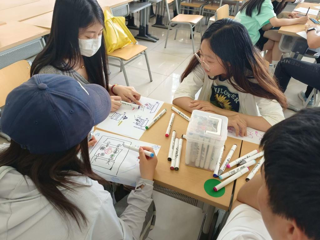 活动伊始,辅导员李梦妍老师向同学们介绍了团辅活动的原则、活动的主题与目标,并通过热身小游戏“相似圈:谁与我一样”、“马莲开花”带动起浓厚的活动氛围。随后,在“听听我的心声”环节,同学们按照要求依次做自我介绍,促进成员间的熟悉和了解,增进成员间的信任和接纳,同时帮助同学们正确的认识自己的优点,增强其自信心。接下来,进行分组,以“我与朋友之间的故事”为主题进行自由涂鸦创作,创作后进行组内分享,并以心理剧的形式表演出组内最精彩的一个故事。活动尾声,李老师带领同学们进行“心有千千结”小游戏,使同学们体会到了协作的重要性,增强了团队的归属感。最后,分享活动感悟,同学们纷纷表示,通过本次活动,增进了与同学们间的相互了解,对人际关系有了更深的认识,收获快乐的同时也促进了个人成长。