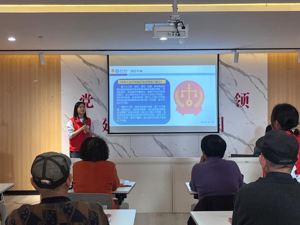 活动伊始,志愿者通过“暖心问答”的方式,初步了解老人们对智能手机的应用能力与熟练程度。随后,志愿者通过PPT展示与手把手教学的方式,为老年人讲解手机基础操作和软件使用,并与老人积极互动,细心询问疑惑点,从字体调节到微信支付,帮助老人解决最基本的日常应用问题。最后,志愿者通过播放电信诈骗短视频,使老年人了解电信诈骗的常见手段,并为老年人普及《中华人民共和国反电信网络诈骗法》的相关内容,进一步提高老年人防骗意识与信息安全意识,助力老人更好、更安全的使用智能手机。