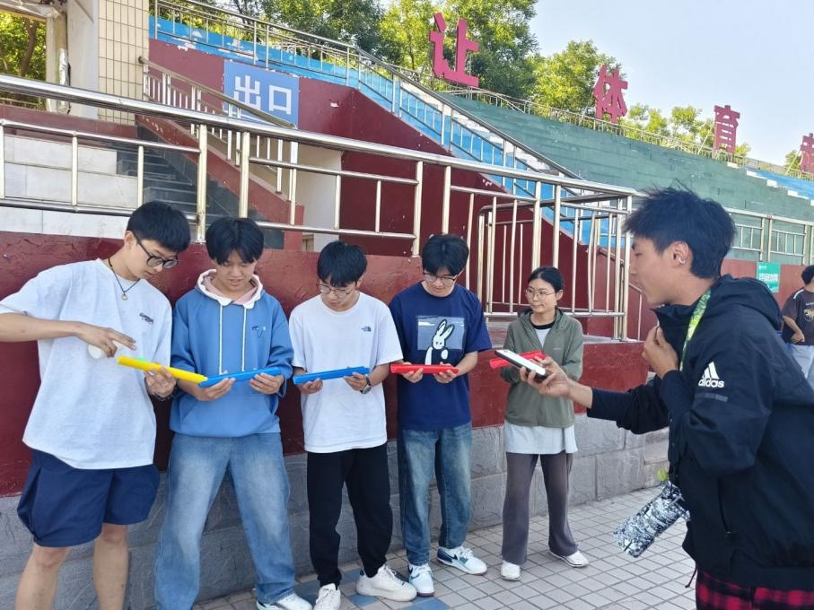本次活动通过趣味竞技与团队合作相结合的形式,吸引了多名学生参与其中。15名参赛者需通过随机抽签分为三支队伍(每队5人),依次完成跳长绳、珠行万里、蒙眼寻物和撕名牌四个环节。当比赛正式拉开帷幕,四大环节精彩纷呈。在珠行万里的环节,U型槽中滚动的乒乓球考验着团队的协作能力,队员们屏息凝神、精准传递,争分夺秒冲刺目标;跳长绳时,各队成员默契配合,随着长绳翻飞,步调一致、奋力跃动,展现出青春活力;蒙眼寻物环节充满趣味与挑战,蒙眼队员在队友的引导下,小心翼翼摸索前行,向着终点的篮球进发;撕名牌环节各队“守护者”灵活走位、协同作战,在激烈角逐中捍卫本队“宝藏”,将活动气氛推向高潮。