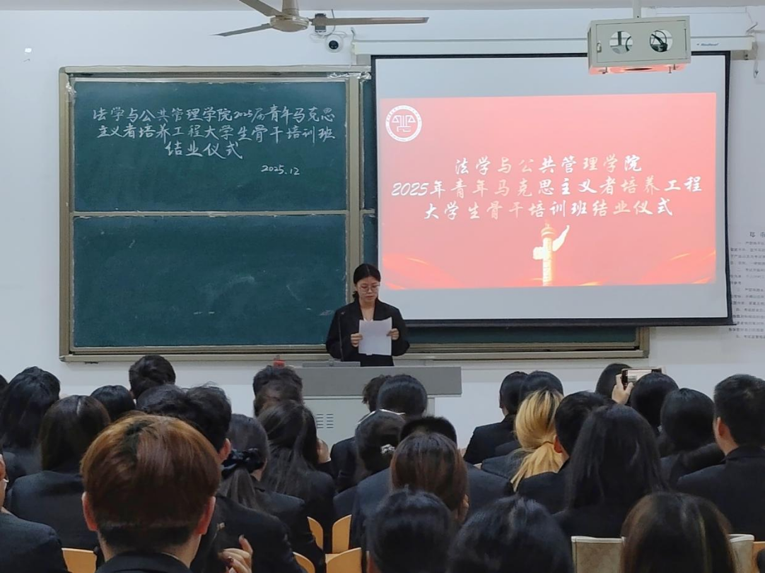 12月4日,法学与公共管理学院2025年青年马克思主义者培养工程大学生骨干培训班结业仪式在博文楼427顺利举行。经过二十余天的系统培训,全体学员圆满完成各项学习任务,顺利结业。