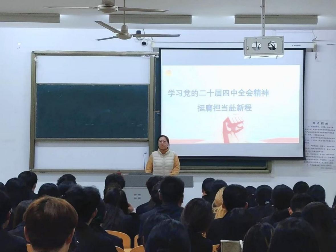 为深入学习贯彻党的二十届四中全会精神,引导青年学子筑牢思想根基、勇担时代重任,12月4日,法学与公共管理学院在博文楼427教室开展“学习党的二十届四中全会精神 挺膺担当赴新程”青马工程主题课程。学院团委书记李梦妍担任主讲人,青马班全体学员参与学习。