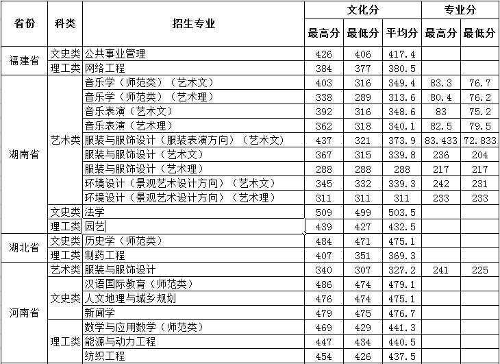 bat365中文官方网站2017年艺体类本科专业录取分数统计表
