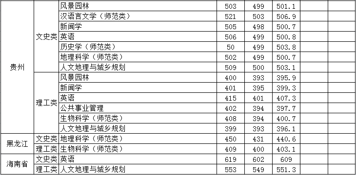 2017年校企合作本科文史、理工类各专业录取分数统计表