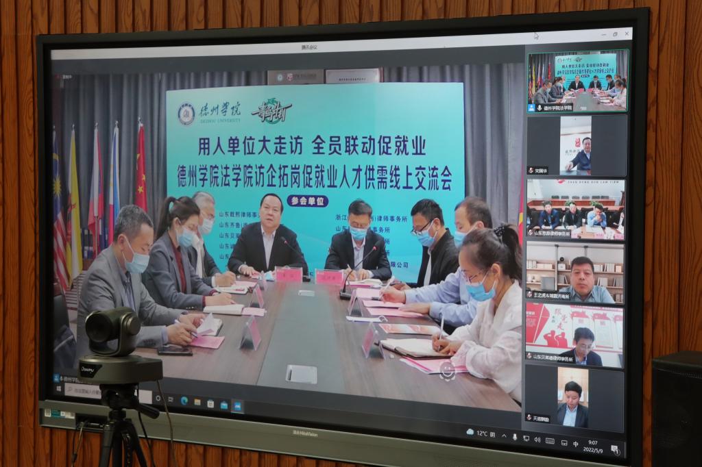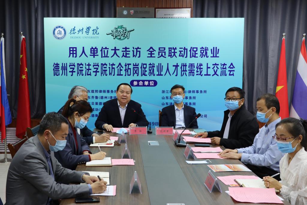 会上,bat365中文官方网站负责人介绍了bat365中文官方网站办学情况,山东载熙律师事务所、山东涵诺律师事务所、山东家硕律师事务所等10家企业代表分别就校企深化合作、人才培养、人才招聘、合作平台构建等工作深入开展交流。随后,各企业分别进行招聘岗位说明,有意向的同学通过线上形式投送简历或与企业进一步进行沟通交流。