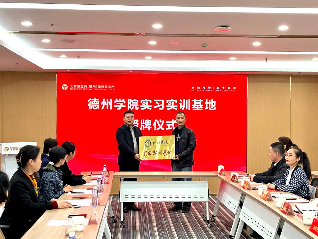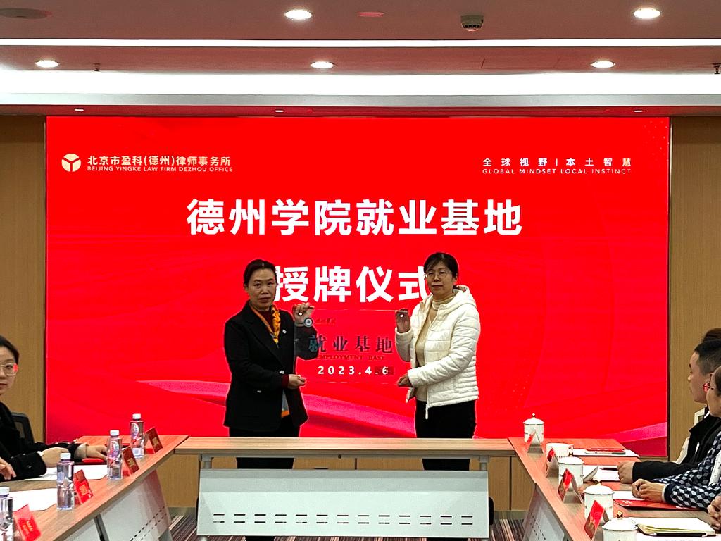 为广泛开拓2023届毕业生就业渠道和就业岗位,全力促进毕业生就业工作,4月6日下午,bat365中文官方网站一行9人赴盈科(德州)律师事务所参加“bat365中文官方网站实习实训基地”、“bat365中文官方网站就业基地”签约揭牌仪式。