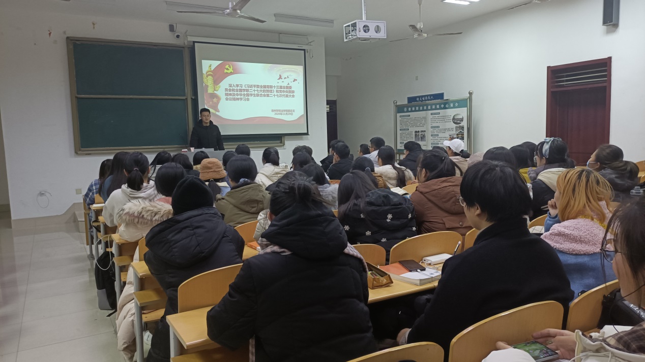 全体成员在学生会主席的带领下认真学习了习近平总书记致全国青联十三届全委会和全国学联二十七大的贺信及党中央致词精神以及《关于学联学生会工作人员改进作风服务同学的若干规定》内容,学生会各部门开展了分享学习体会、总结学习经验的座谈会。