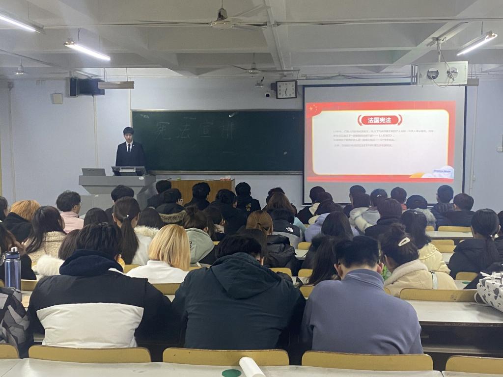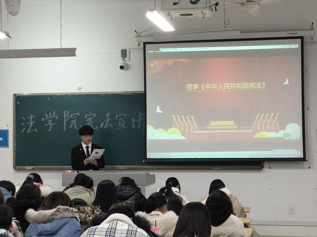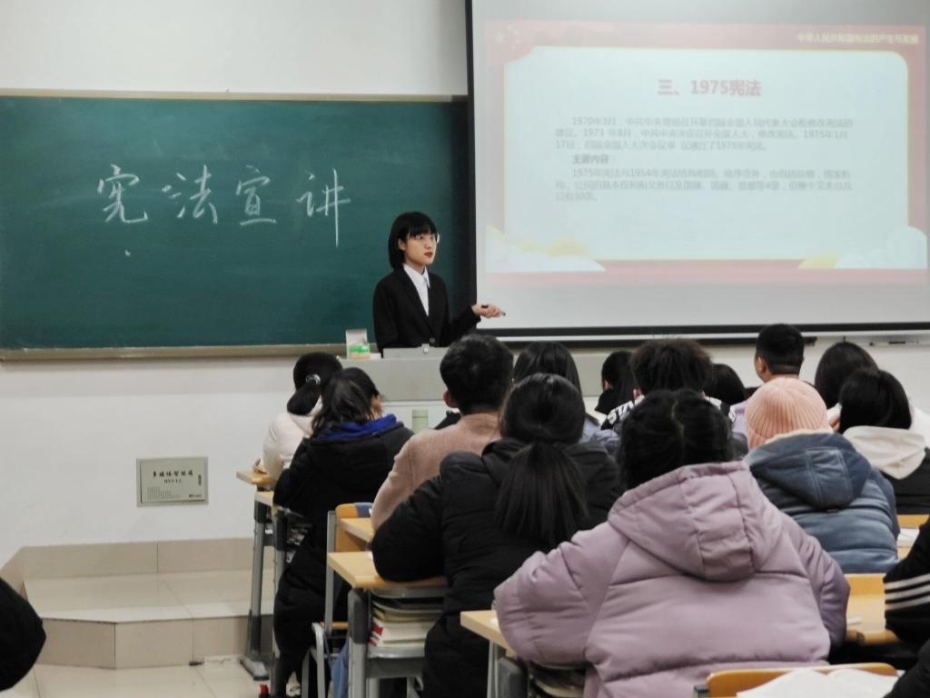 为深入学习贯彻习近平法治思想,普及宪法基本知识,大力弘扬宪法精神,培养大学生群体维护宪法、遵守宪法、捍卫宪法的意识与能力,12月4日以来,在我校党委宣传部、团委的大力支持下,bat365中文官方网站组织法学专业同学成立大学生宪法宣讲队,深入各院系教室、宿舍开展宪法宣讲活动。