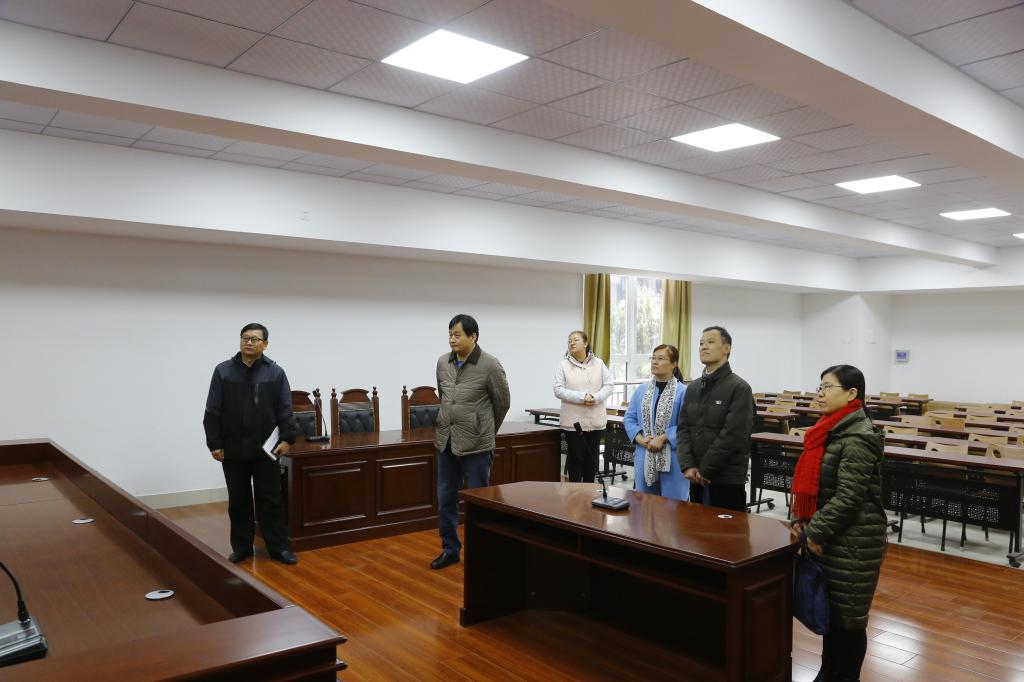 赵校长还到bat365中文官方网站模拟法庭进行了现场调研。学院负责人汇报了模拟法庭建设情况以及模拟法庭综合利用的有关安。赵校长给予充分肯定,并对模拟法庭建设提出了工作建议,要求bat365中文官方网站以模拟法庭实训中心为平台进一步抓好专业实践教学,同时要借助实训中心开展好学生社团、教研科研交流、社会服务等工作。