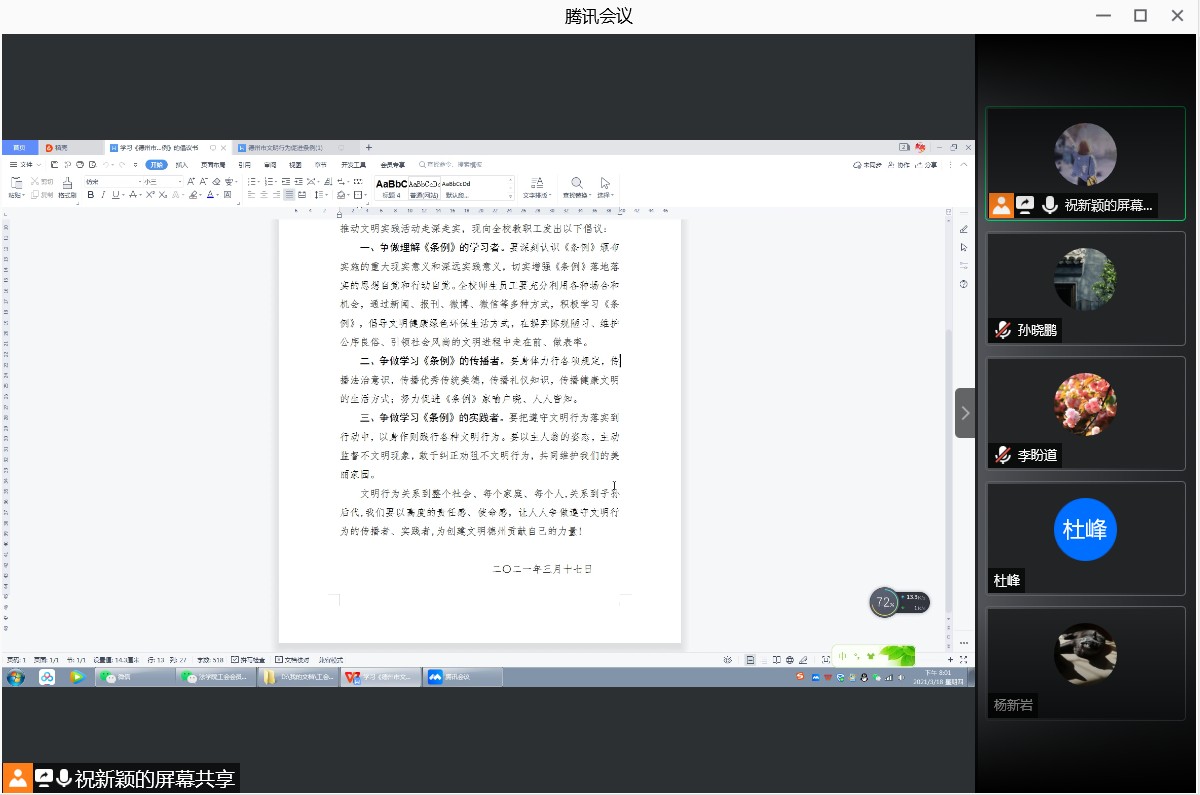 3月18日晚,bat365中文官方网站召开全体教职工视频会议,传达学习德州市创建全国文明城市誓师大会会议精神。