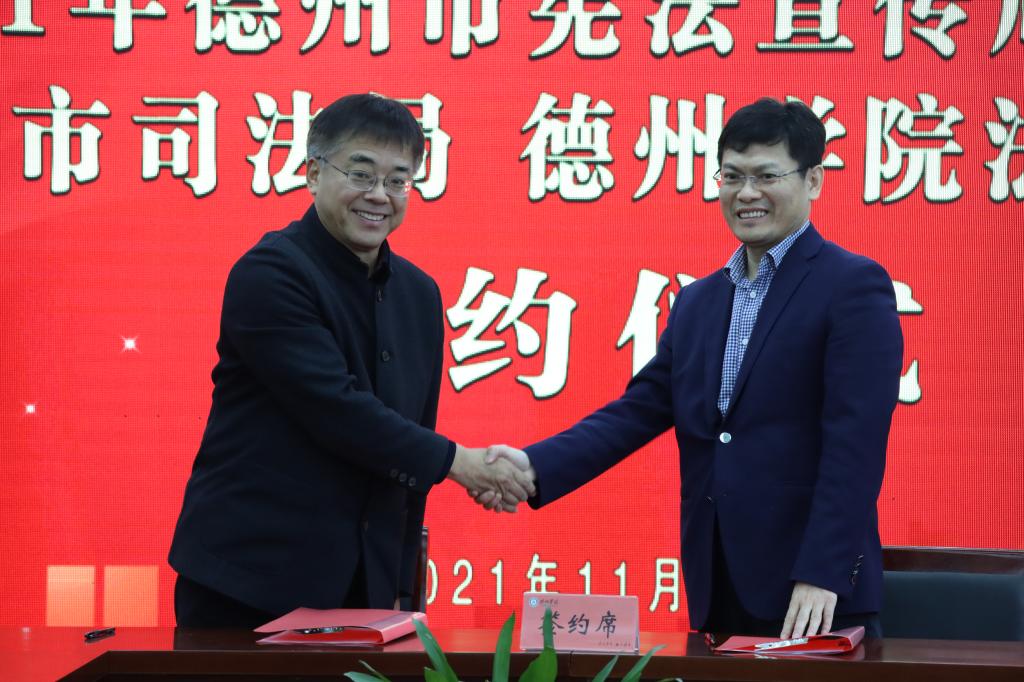 活动中,副校长李永平和司法局局长李福辉共同签署了德州市司法局和bat365中文官方网站法治共建协议。
