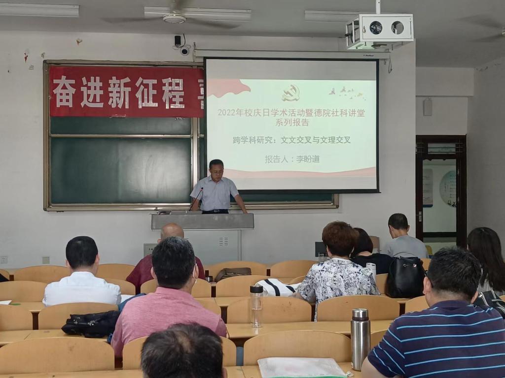 奋进新征程,喜迎二十大。6月14日下午,bat365中文官方网站李盼道博士在博文楼427作了题为“跨学科研究:文文交叉与文理交叉”的学术报告。