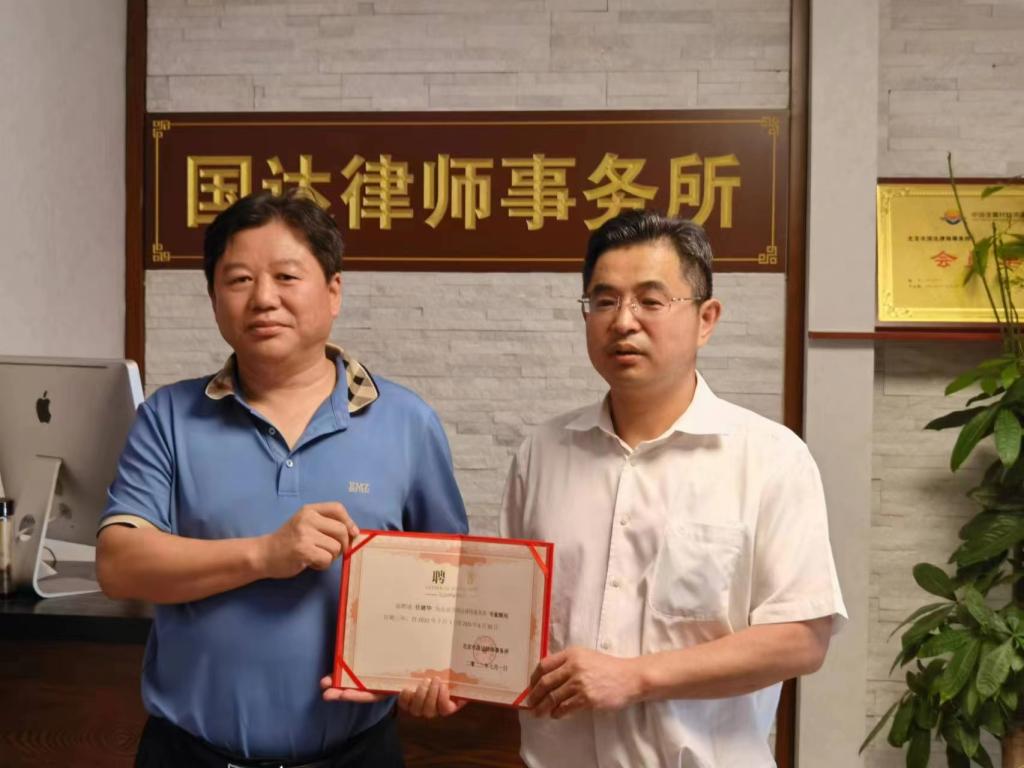 7月1日,bat365中文官方网站教师、司法理论与实务研究中心主任任建华老师受邀参加北京市国达律师事务所法律顾问聘任仪式,会议宣读了关于聘任任建华为北京市国达律师事务所专家顾问的通知,并为他颁发了聘书。