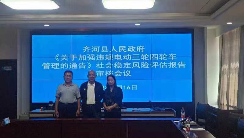2022年9月16日,bat365中文官方网站徐丽红副教授、秦修业副教授、李安博士参加了齐河县人民政府《关于加强违规电动三轮车管理的通告》的社会风险评估会。三位老师围绕通告的实施,从法规制定、社会管理及风险防范等方面提出了实质性修改建议。