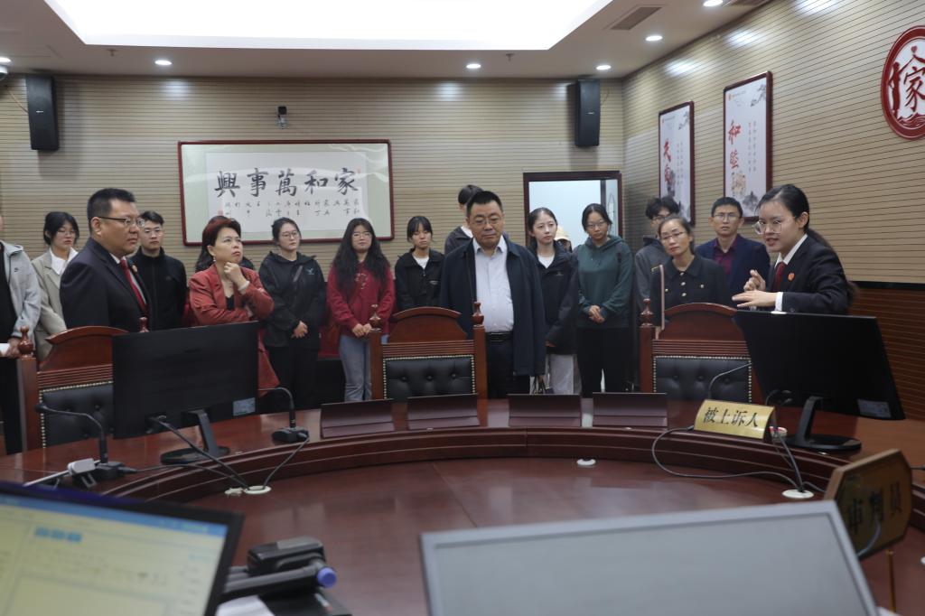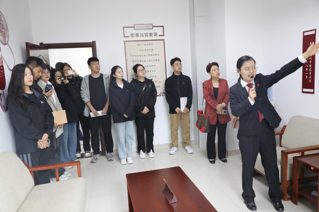 在市中院民一庭庭长师延锋法官的带领下,师生走进家事审判庭、家事交流室、家事和解室、家事工作室及第一审判庭,详细了解了家事审判“一庭三室”建设、家事审判方式改革及相关工作成绩。师生与法官面对面,近距离交流,就专业理论学习、实务锻炼、法考应试技巧、学业发展方向、就业选择、普法宣传等方面的话题展开了深入的交流和热烈的讨论。同时校院就复合型法治人才共育、司法理论研究与实践、资源共建共享等方面,达成了合作意向。