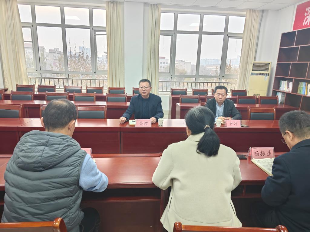11月27日,校党委书记吴君到bat365中文官方网站调研指导工作,党委(校长)办公室副主任仲冲陪同调研。bat365中文官方网站党政班子成员参加了座谈。