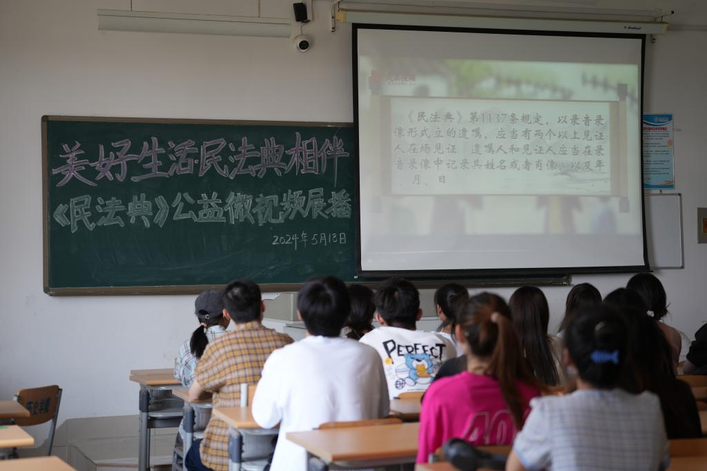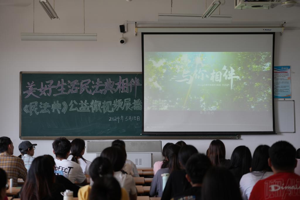 2024年5月是全国第4个“民法典宣传月”,为深入实施“八五”普法规划,贯彻落实习近平法治思想,弘扬社会主义法治精神,带领广大学生学习民法典、宣传民法典,运用民法典,5月18日,bat365中文官方网站“美好生活·民法典相伴”民法典公益微视频展播活动在博文楼417教室举行,来自全校19个学院的40余名学生参加观看。