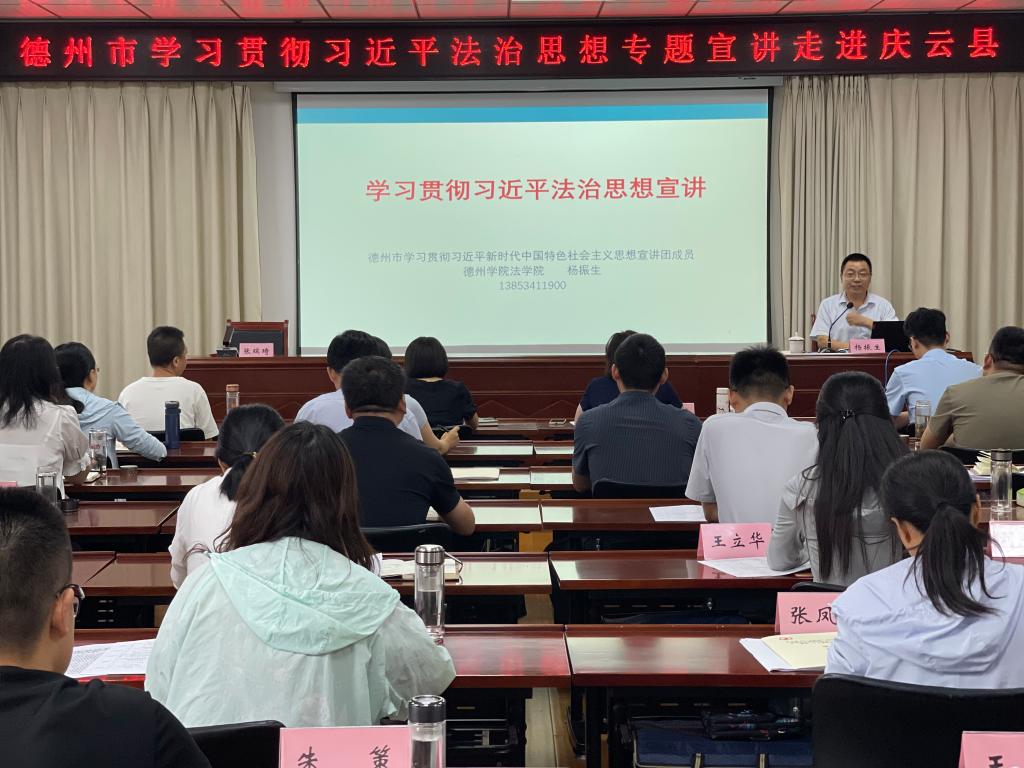 6月21日下午,杨振生院长到庆云县委党校作习近平法治思想专题宣讲,庆云县2024年科级干部学习习近平新时代中国特色社会主义思想和党的二十大精神进修班50余名学员参加。