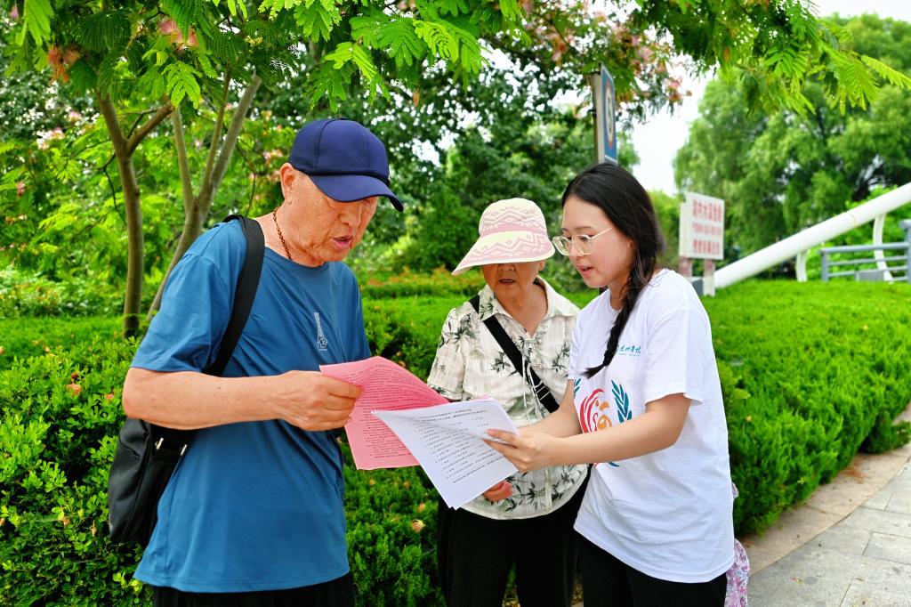 在黄河生态保护主题公园和平阴县黄河河务局宣传文化广场,服务团成员观察国情社情民情,通过发放宣传材料、开展问卷调查、搭建法律咨询点,为当地居民热心普法,并就乡村振兴中产业发展、生态宜居、乡风文明、生活质量、法治保障等方面问题开展交流和讨论,以实际行动诠释用法治保障黄河的生态意义。