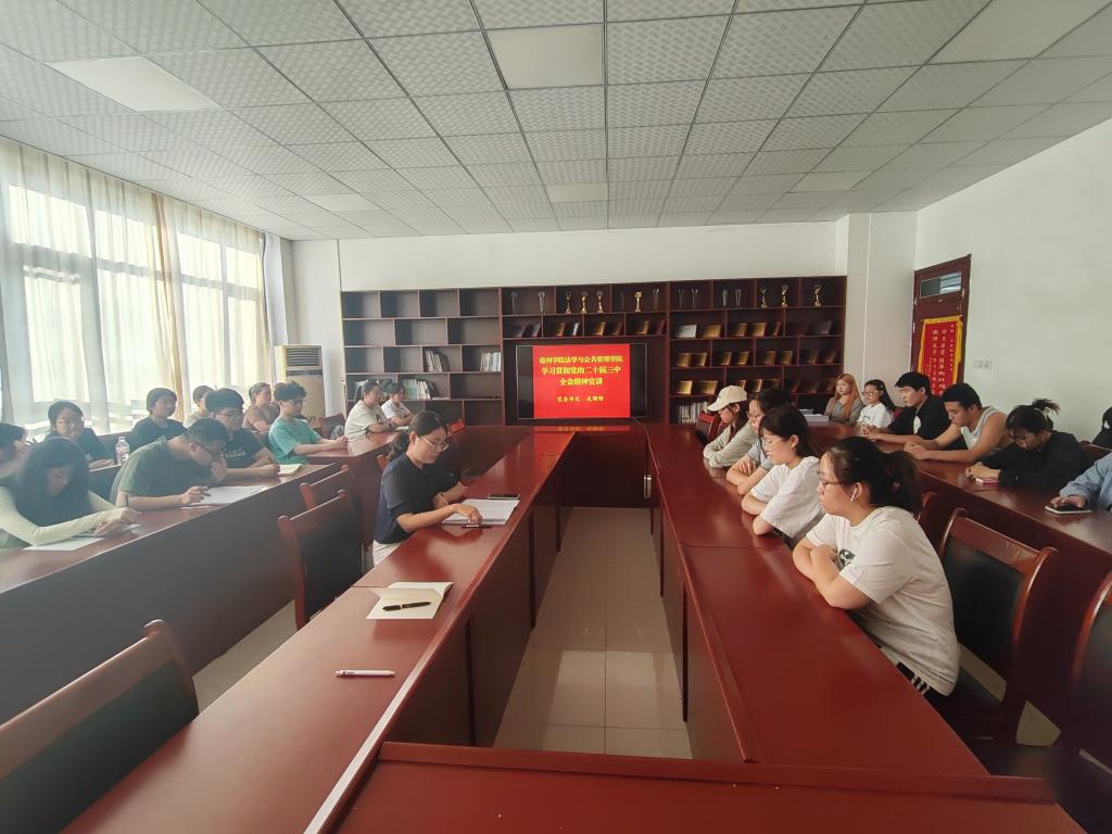 93日上午,法学与公共管理学院举行学习贯彻党的二十届三中全会精神宣讲报告会。学院党委书记武珊珊作宣讲报告。全体学生党员及入党积极分子代表参会。
