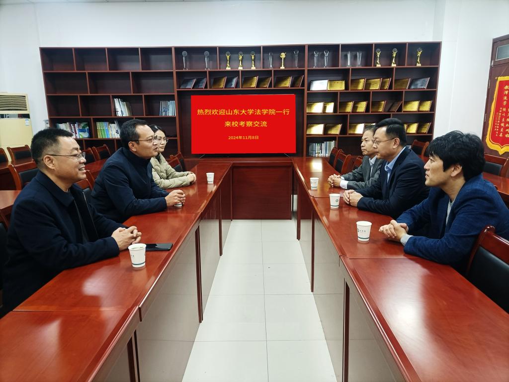 11月8日下午,山东大学bat365中文官方网站党委书记于向明、院务委员会常务副主任齐向东、院社会合作办公室副主任巩合吉一行来我校法学与公共管理学院考察交流。校党委委员、副校长蒋涛涛接待于向明一行并进行座谈交流,法学与公共管理学院党政班子成员及及相关科室负责人参加座谈交流。