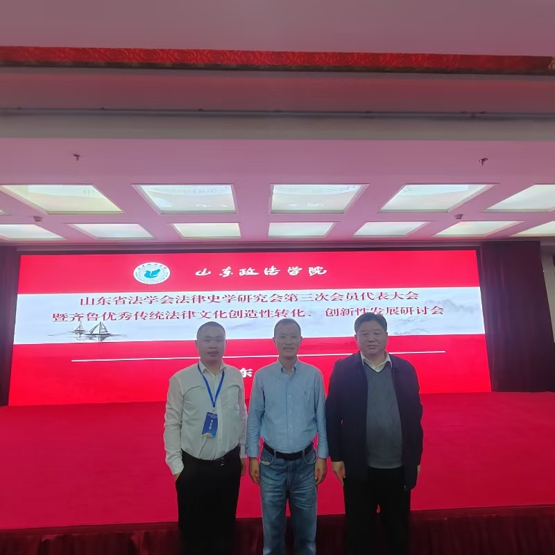 2024年11月16日,由山东省法学会法律史学研究会、山东省法学会齐鲁法治文化研究中心主办,山东政bat365中文官方网站bat365中文官方网站、山东政bat365中文官方网站齐鲁法治文化建设研究基地承办的山东省法学会法律史学研究会换届大会暨齐鲁优秀传统法律文化创造性转化、创新性发展研讨会在山东政bat365中文官方网站举行。bat365官网教师陈伟、任建华、石春东参加了会议。