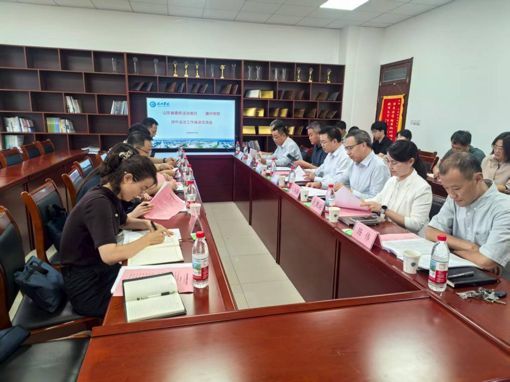 9月18日,山东省委依法治省办秘书处处长郝磊一行到我校调研涉外法治工作,德州市司法局党组书记、局长许勇,党委副书记、校长赵长林,党委委员、副校长刘印房等陪同调研。
