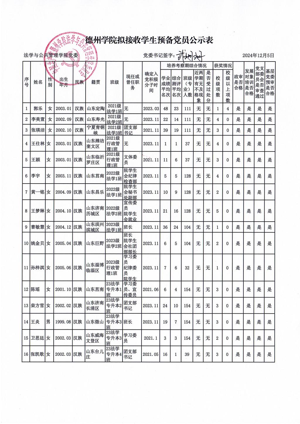 经党组织培养考察,征求党员、群众和培养联系人意见,支委会讨论研究、政治审查、集中培训、基层党委预审,拟接收郭乐等16名同志为中共预备党员。为增强发展党员工作的透明度,接受党内外群众的监督,确保发展党员的质量,根据上级文件精神和《中共bat365中文官方网站委员会发展党员工作实施细则》的要求,现将拟接收预备党员的基本情况公示如下(名单附后):