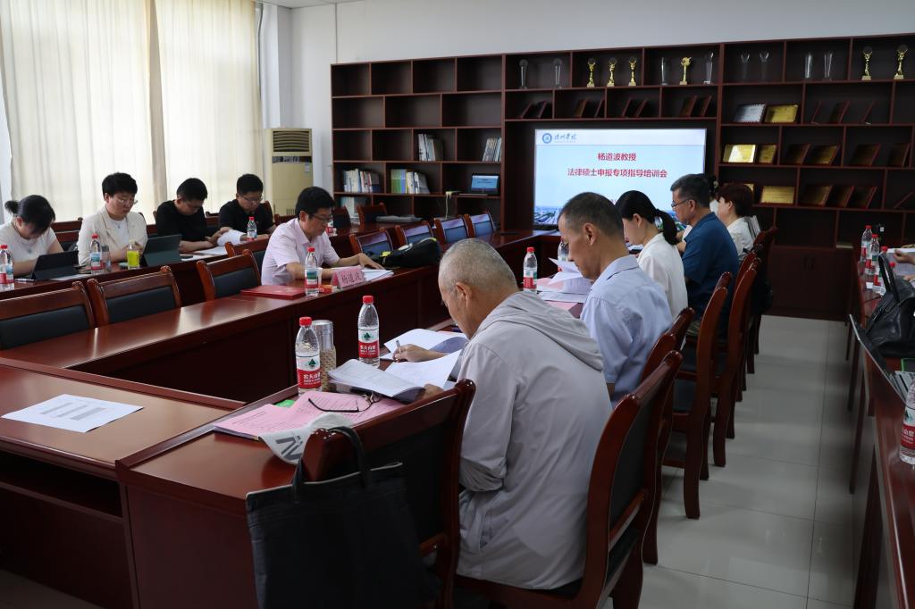 为进一步推进法学与公共管理学院法律硕士点建设,提升法学学科建设水平,5月29日上午,法学与公共管理学院特邀聊城大学bat365中文官方网站院长杨道波教授来院作法律硕士申报工作专项辅导。法学与公共管理学院党政班子成员及申硕专班全体老师参加了会议。
