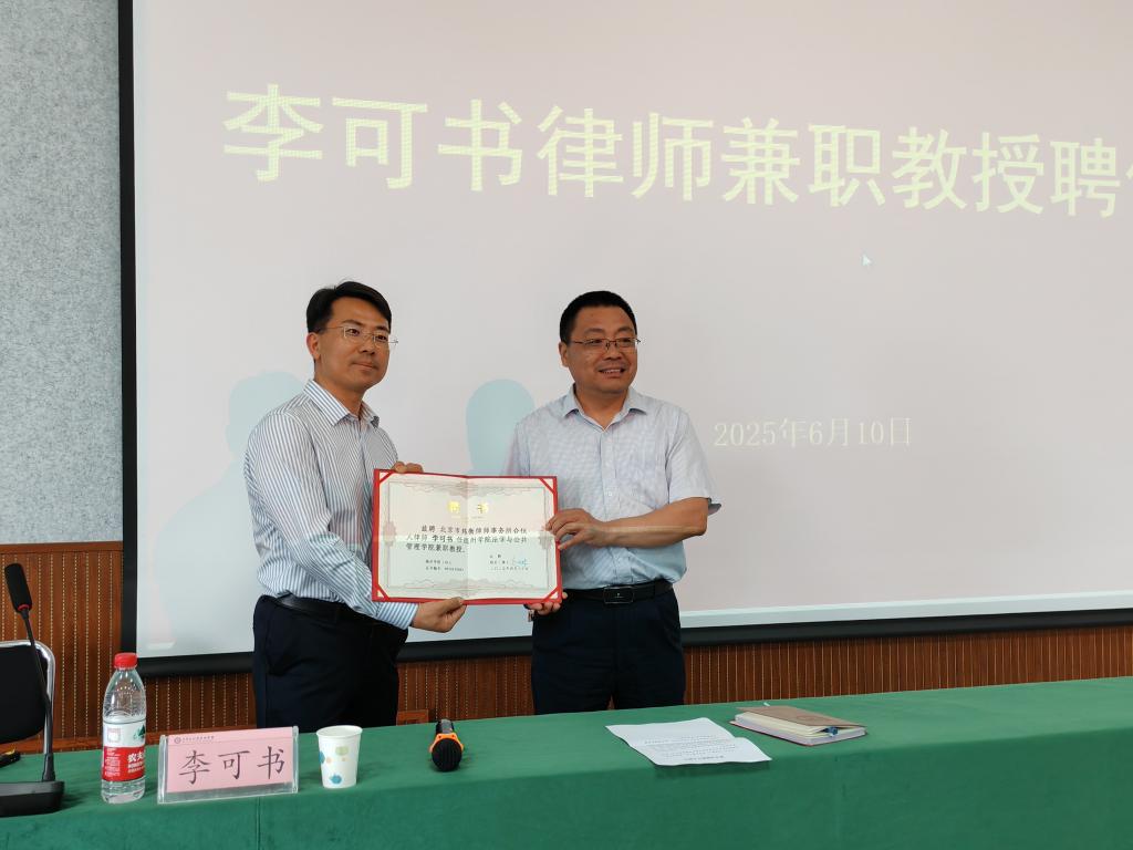 报告中,李主任从人工智能的含义、优缺点入手,基于真实的法学案例,深刻的分析了Deepseek等人工智能中存在的法律议题与Deepseek等人工智能的法律规制路径。最后,李主任与在场的同学们进行了积极的互动,充分解答了同学们在使用人工智能过程中的疑惑。 会前bat365官网负责人向李可书主任颁发了bat365中文官方网站兼职教授的聘书。报告会后,李可书主任与法学与公共管理学院相关负责人在博文楼439会议室围绕“人才引进”“实习实践”“专业建设”等事宜进行深入座谈交流。双方一致表示,将以此为契机,不断拓宽合作领域,加强校企融合,助推学院高质量发展。