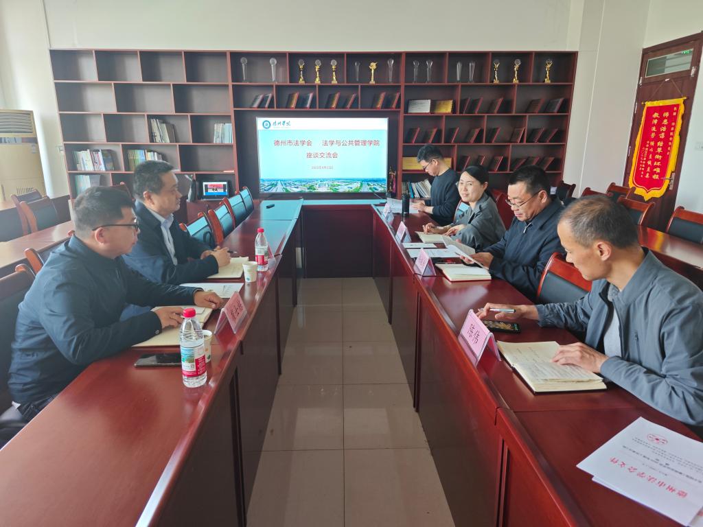 为加强校地合作交流,实现资源共享与优势互补,共同推动德州市法学研究和法治建设等工作,4月25日,德州市法学会专职副会长曹恩军等一行来校开展座谈交流,法学与公共管理学院负责人和有关教师参加了座谈。