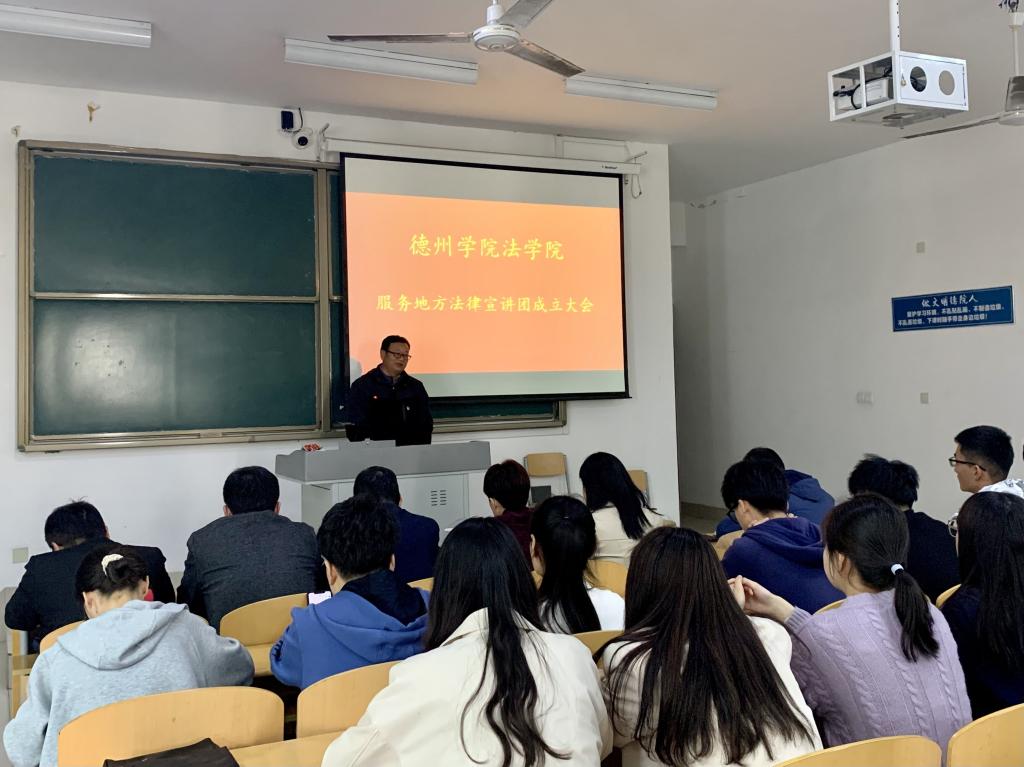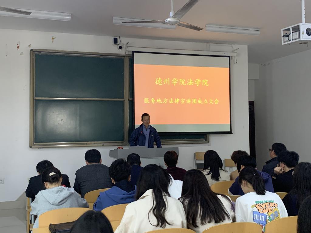 4月6日bat365中文官方网站服务地方法律宣讲团成立大会暨宣讲活动启动仪式在博文楼427教室举行。bat365中文官方网站党总支书记杨爱民,副院长陈伟分别就宣讲团成立的意义和运行机制作了发言。法律宣团下设宪法、法治与安全教育、违法犯罪预防和民事法律等四个宣传组,共8位专家,73名法学专业学生担任志愿宣讲员。