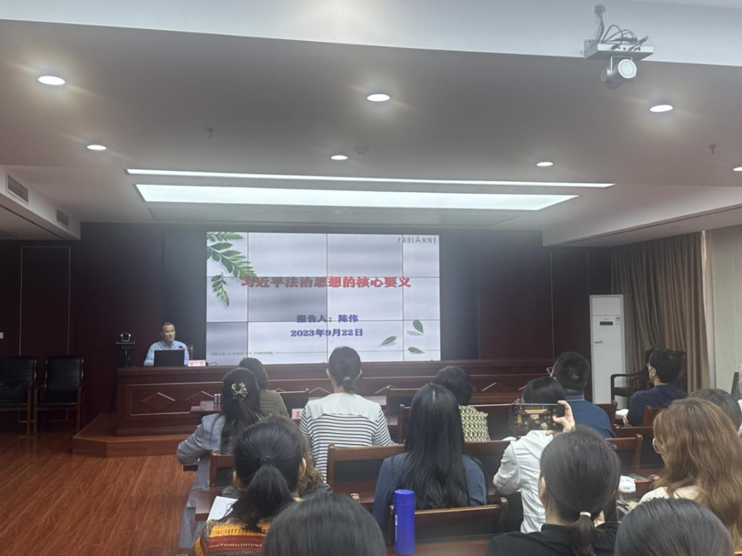 陈伟教授围绕习近平法治思想的“十一个坚持”进行了详细阐述,分享了自己的学习体会。报告内容丰富,具有较强的针对性、指导性,受到参学人员的好评。