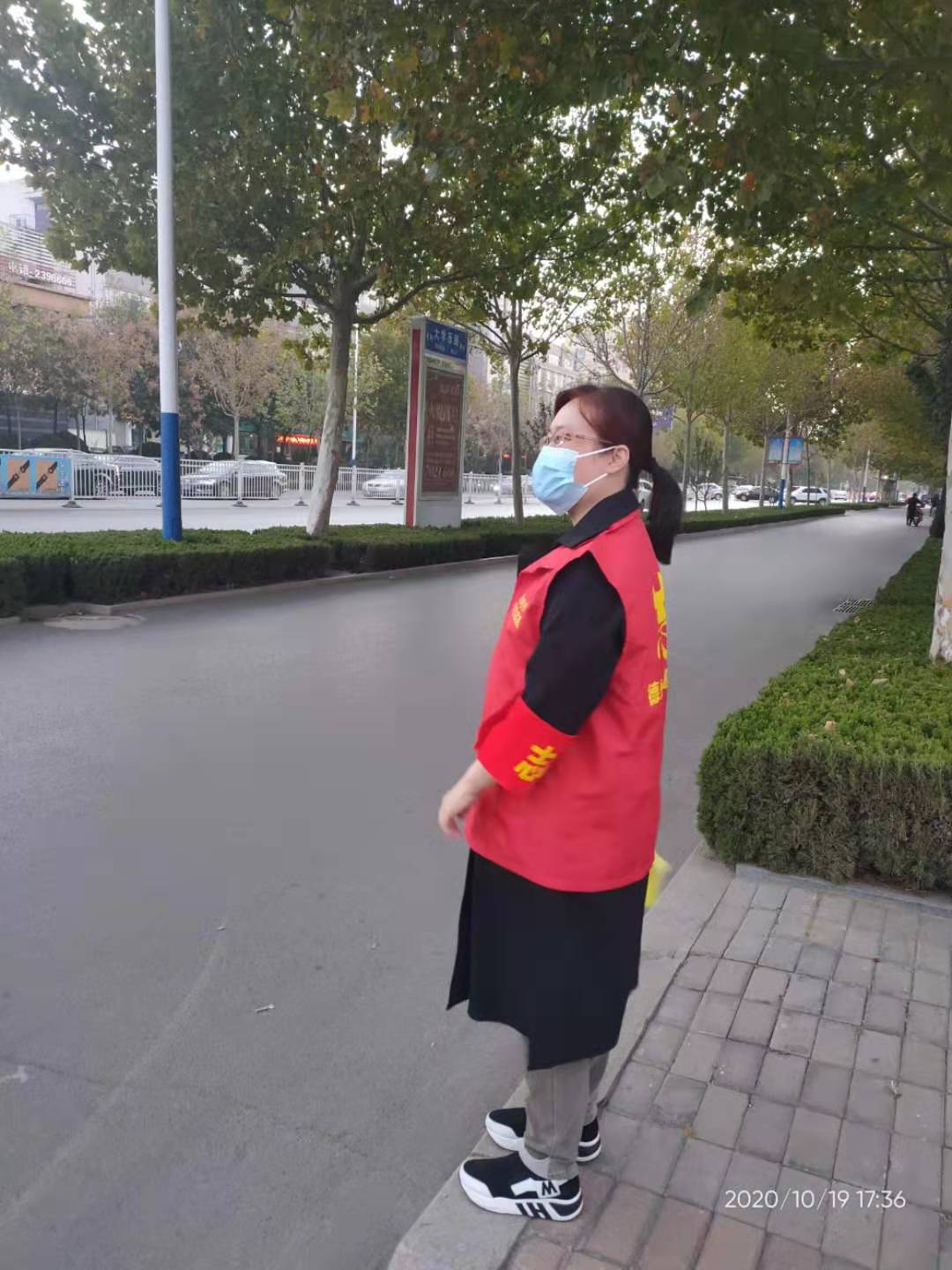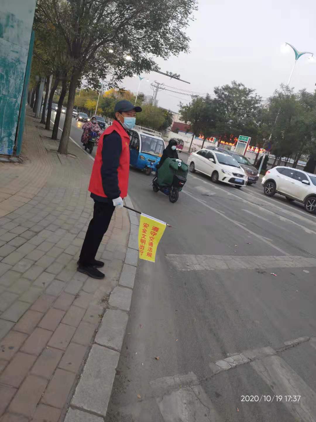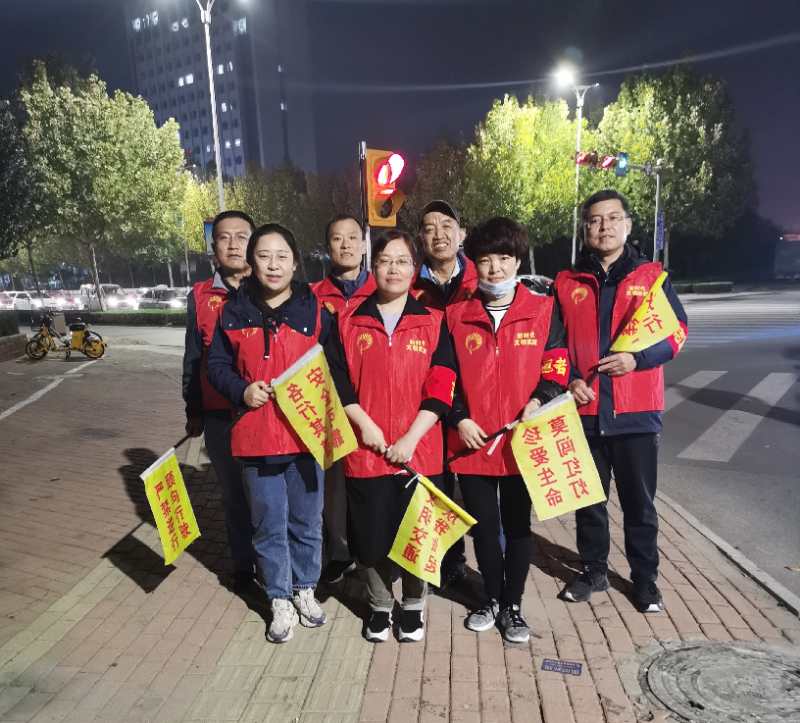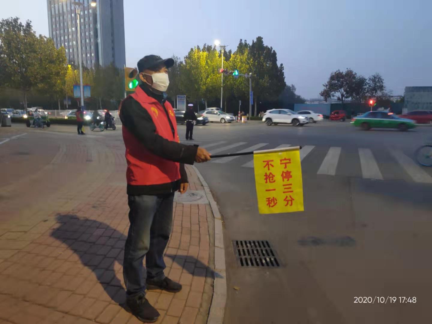 2020年10月19日,bat365中文官方网站第一教师党支部党员教师志愿者在来到德城区德兴路与大学路十字路口协助交警执勤,宣传劝导群众遵守交通规则。