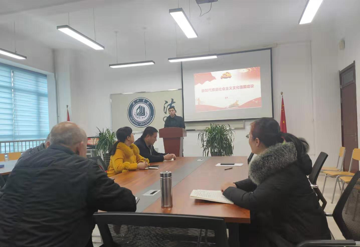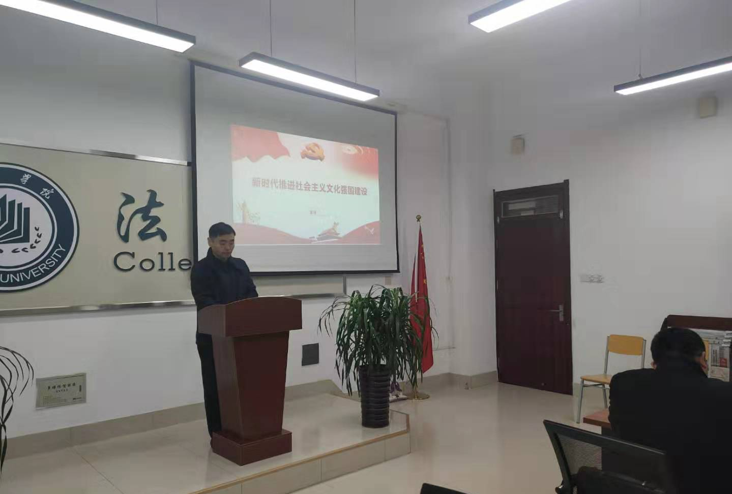 2020年11月23日,bat365中文官方网站党总支副书记、院长夏锋教授在博文楼415党员活动室为第一教师党支部讲了一堂题为《新时代推进社会主义文化强国建设》的党课。