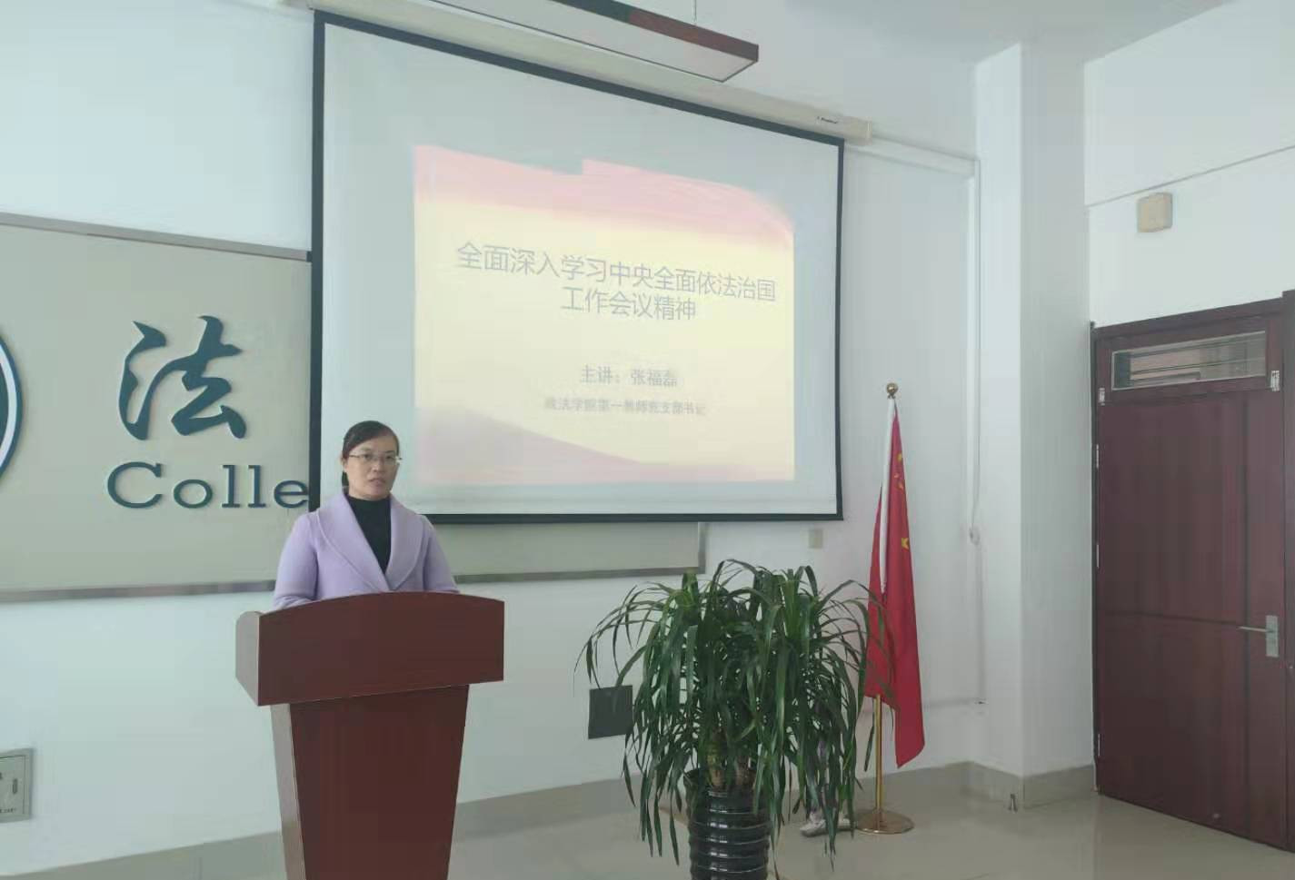 2020年11月24日下午,bat365中文官方网站第一教师党支部书记张福磊副教授在博文楼415党员活动室为第一教师党支部讲了一堂题为《全面深入学习中央全面依法治国工作会议精神》的党课。