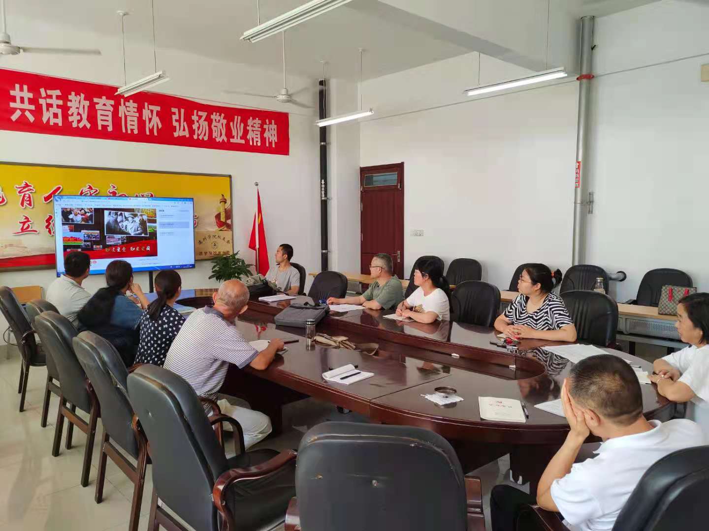 最后党员老师还集体收看了灯塔大课堂的第二十一课,本期“灯塔大课堂”从中国共产党创立的背景、早期组织的建立、第一次全国代表大会的召开、创立的几个问题、创立的特点和历史意义五个方面详细地讲解了中国共产党的诞生是历史的必然。课程教育引导支部党员深刻认识了红色政权来之不易,新中国来之不易,中国特色社会主义来之不易,自觉继承革命传统、传承红色基因、补足精神之钙。