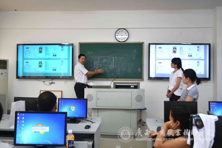 为确保我院顺利参展2015年中国-东盟职业教育联展暨论坛,学院进行了周密部署和前期筹备工作,9月15日下午,院领导李维副院长亲临各参展项目组指导联展准备工作,随同前往检查的有教务科研处韦胜强处长、谢伟燕副处长和财信系林芳主任等,逐个对参展作品和项目进行细致的检查和指导,要求各项目组师生务必认真仔细准备,并做好一些应急预案工作。与学生进行交流,提出展示现场可能出现的问题及解决方案。对粮食仓储购销动态模型讲解的同学给予了肯定,并提出了一些建设性的指导意见。