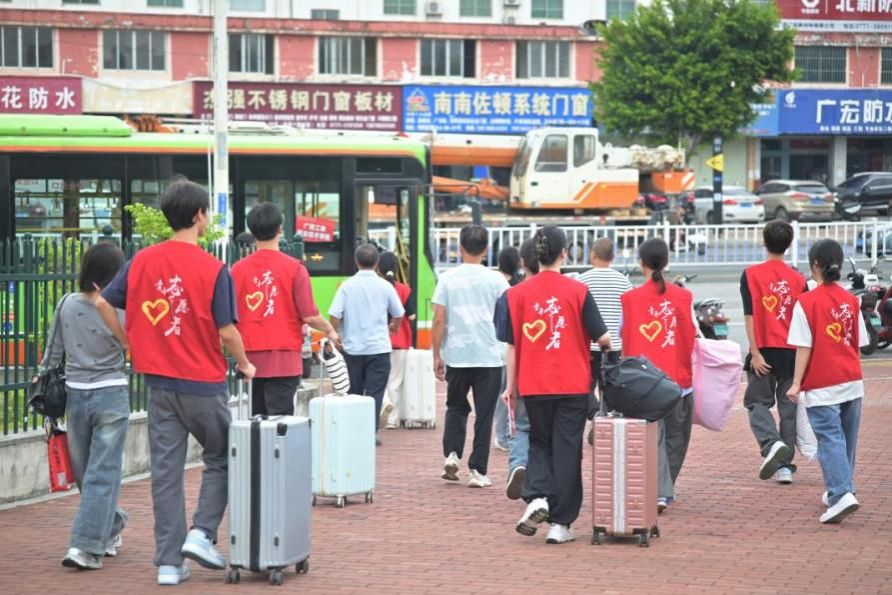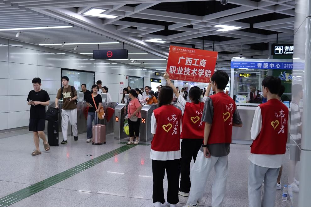 (志愿者们在各大出站口迎接新生)