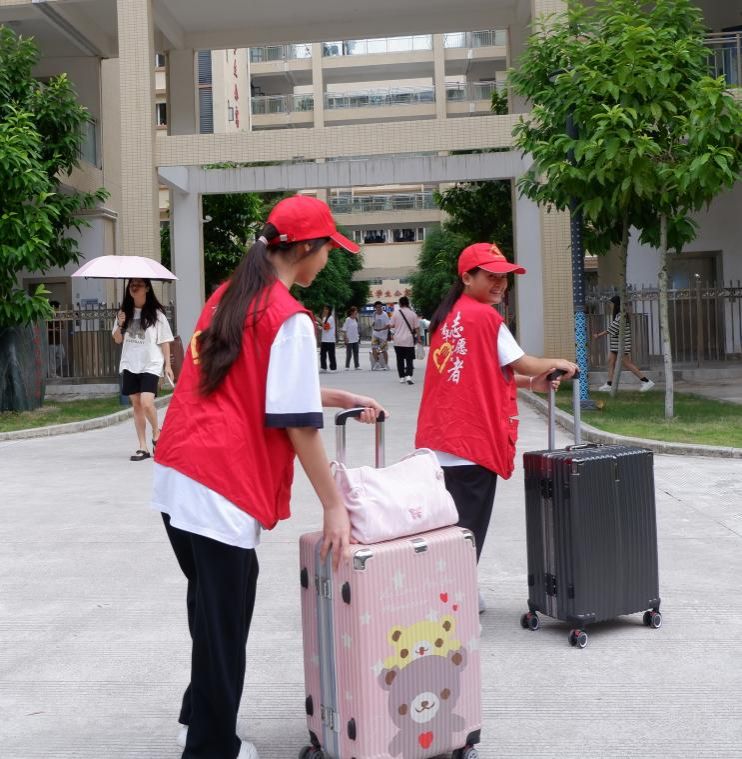 (志愿者们帮助新生搬运行李)