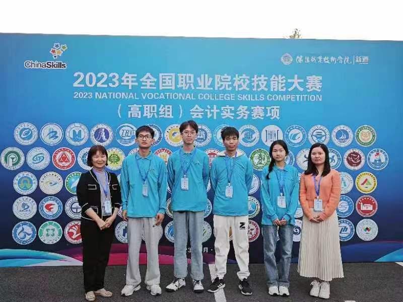 (粟卫红老师(左一)作为指导教师之一与参赛学生合影)